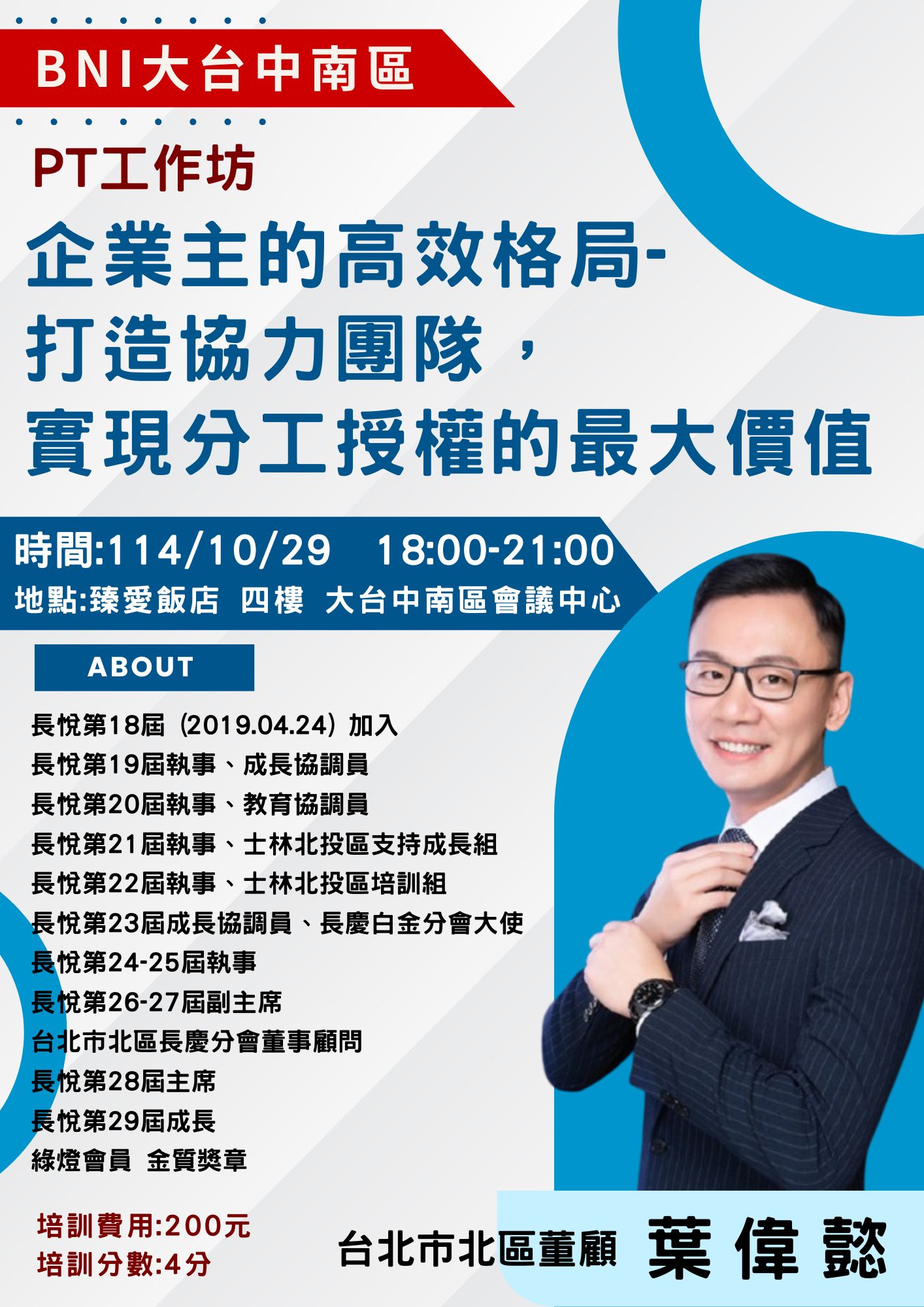 BNI Greater Taichung South Region is committed to fostering global business growth, with the vision of becoming a financial and trade hub in the Asia-Pacific region.